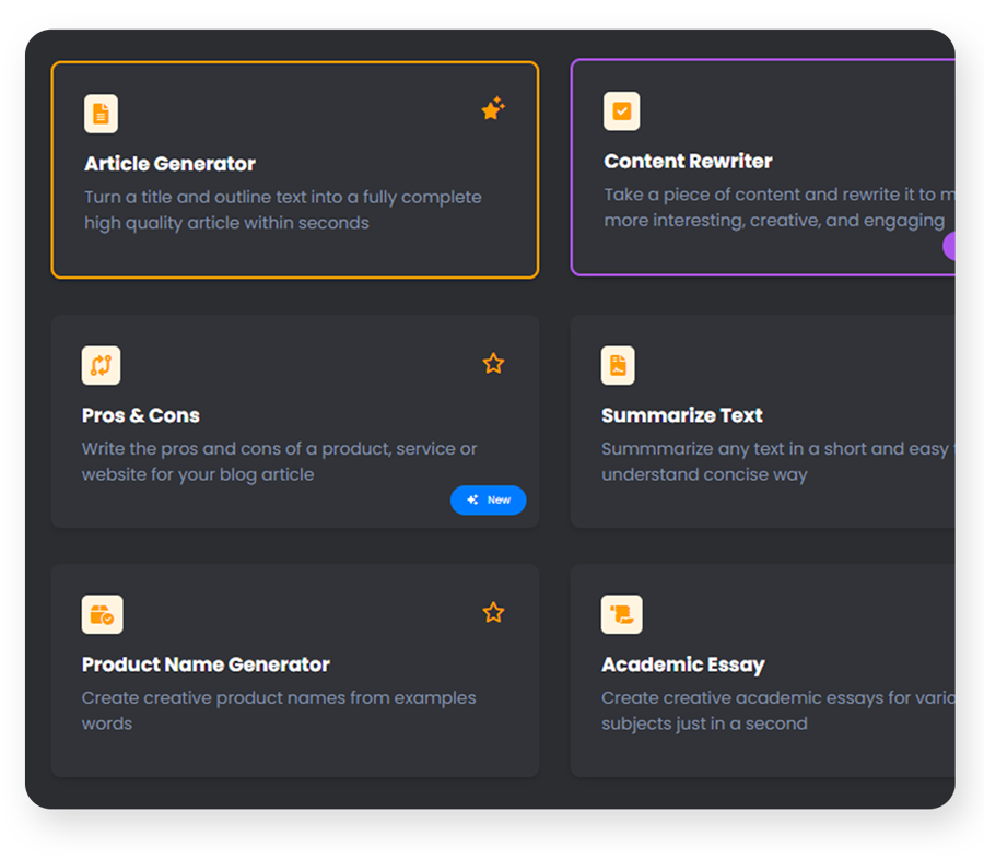 Article Generator Content Improver Blog Contents Ad Creations Text to Speech And Many More!